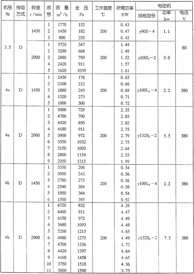 2、该系列风机可制成右旋和左旋两种形式,从电动机一端正视,叶轮按顺时针方向旋转称右旋转风机,以“右”表示;按逆时针方向旋转称左旋转风机,以“左”表示。